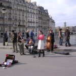 5月の晴れ間、気ままに始まったパフォーマンスに集まったパリの人たち。