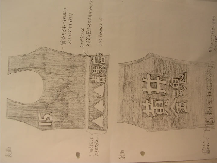 学生の描いたイラスト。「へたでもいい。社会人に思いつけない発想を絵にすることが大事」。