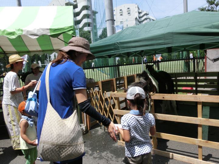 馬車を楽しんだ後は、ポニーやロバにえさやり体験も。