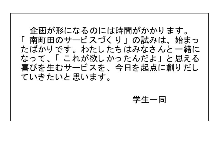 東京女学館大学学生の介在で「小金井あきんどベスト」とこの企画提案が生まれ、やがて「武蔵野まち馬車プロジェクト」につながっていった。