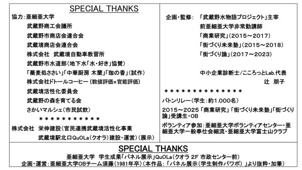 その後、新型コロナの脅威のなかで生まれた「武蔵野水物語プロジェクト」が一連の活動の柱になりました。総勢1000人を超える学生たちとの、熱い、きつい、でも苦しくはなくてわくわくとした記録はここから始まりました。学生の活躍は、続く「武蔵野水物語プロジェクト」ページでご覧ください。